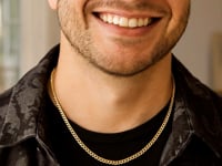This solid curb chain comes in 14k yellow gold and has a width of 3.2 millimeters.